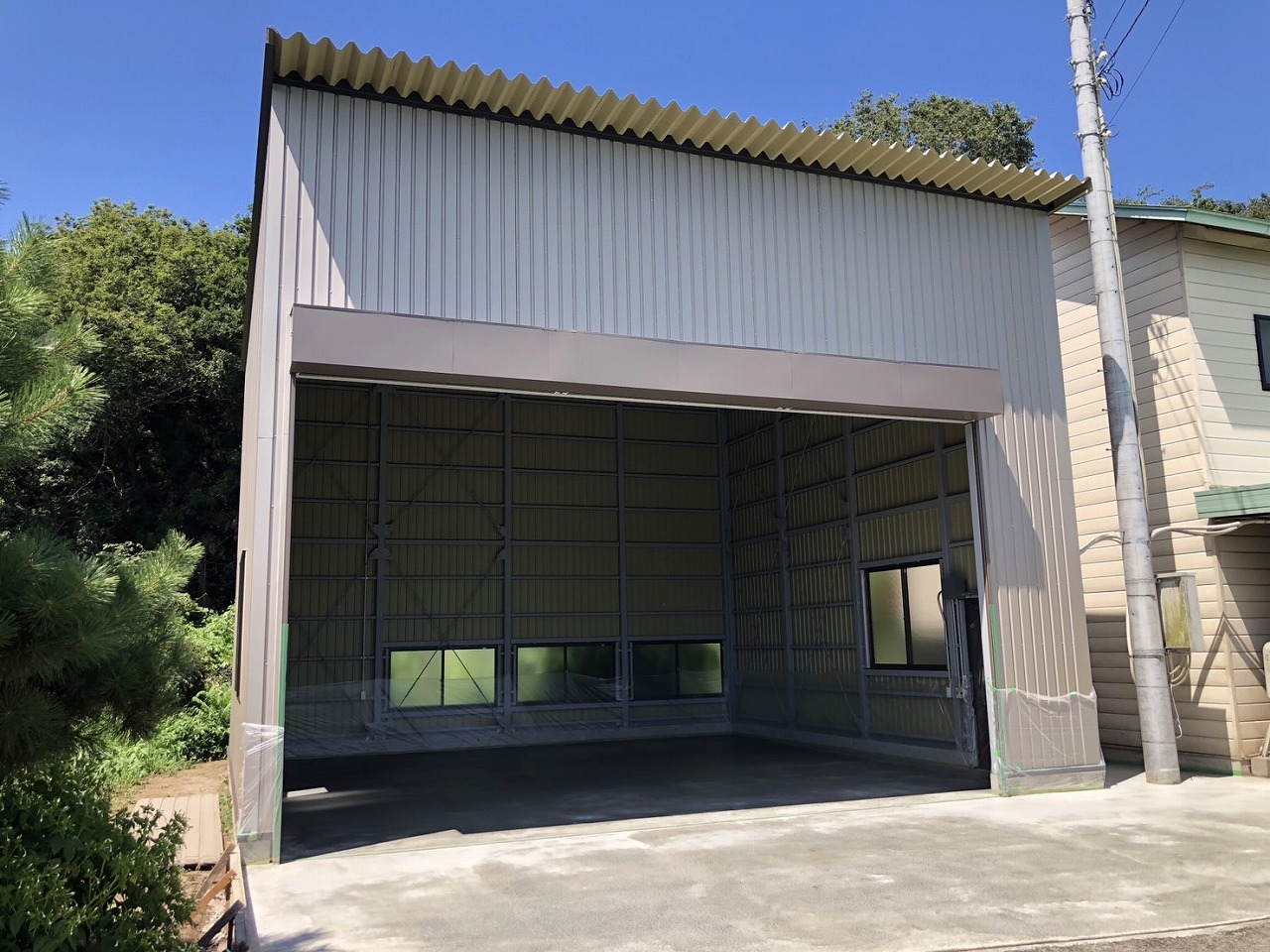 基礎工事 内部土間工事 鉄骨工事 外壁工事 屋根工事 雨樋工事 建具取付工事 シャッター工事 内部鉄骨塗装