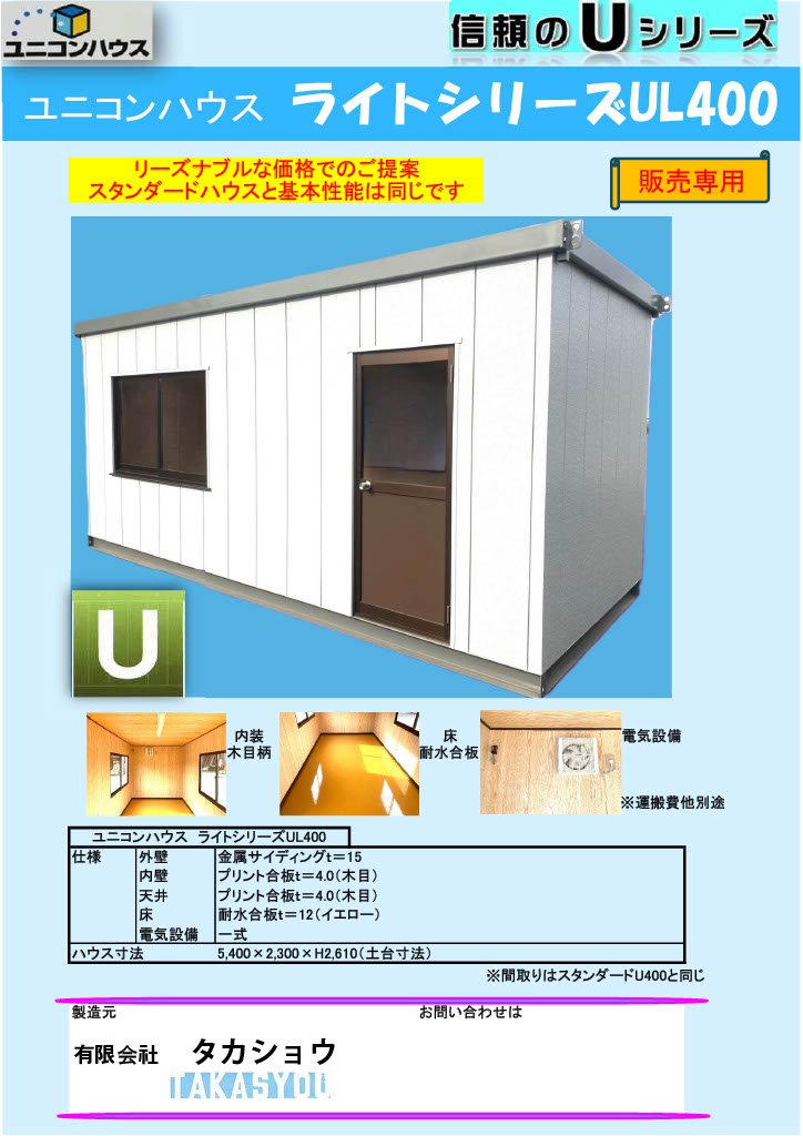 ライトシリーズUL400本体価格 ¥650,000(税別) ※運送費は別途(¥40,000~、要お見積り)